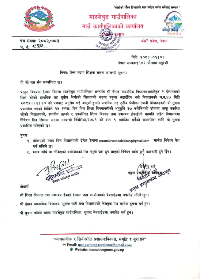 रिक्त पदमा शिक्षक सरुवा सम्बन्धी सूचना ।