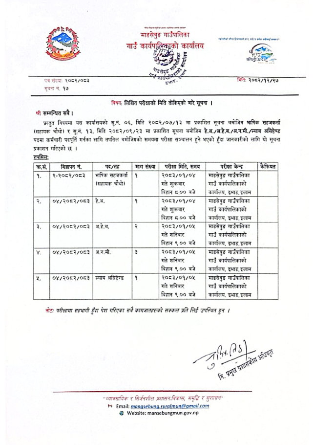 लिखित परीक्षाको मिति तोकिएको बारे सूचना ।