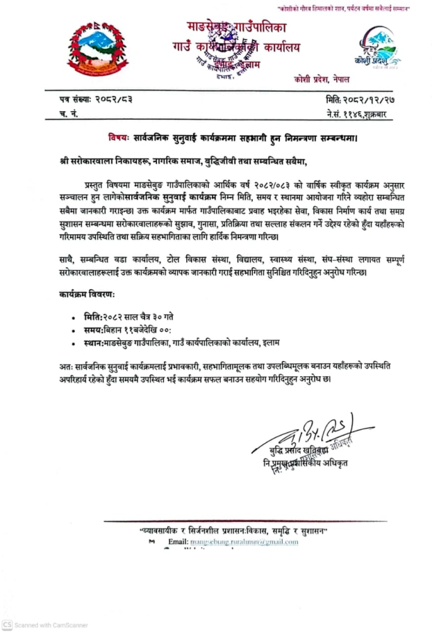 सार्वजनिक सुनुवाई कार्यक्रममा सहभागी हुन निमन्त्रणा सम्बन्धमा।