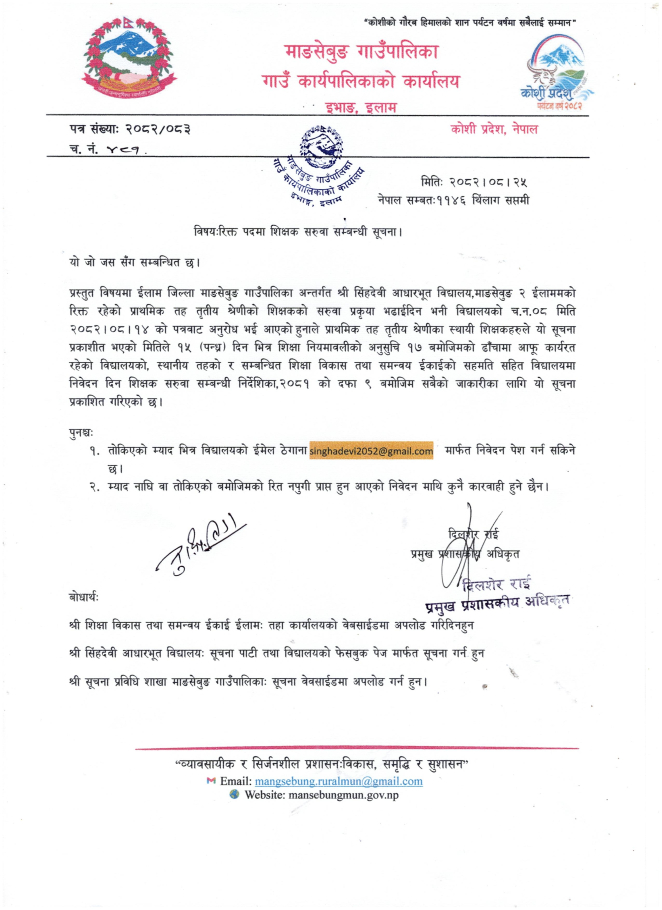 रिक्त पदमा शिक्षक सरुवा सम्बन्धी सूचना ।
